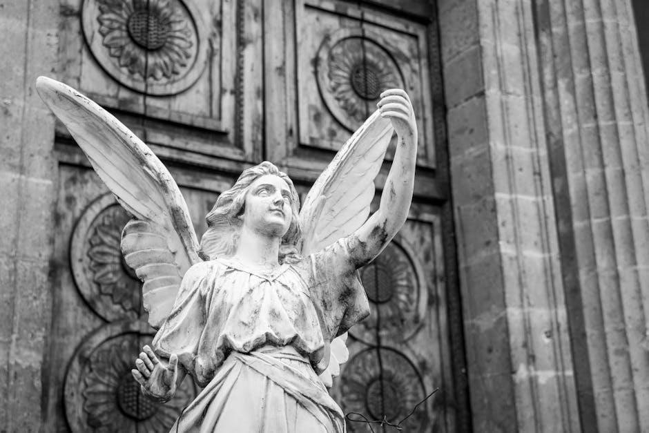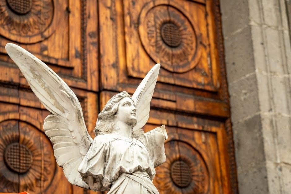 In Reni’s painting, Michael is presented as a youthful and idealized figure, embodying both strength and grace․ He is typically shown with wings, symbolizing his celestial nature, and often clad in armor, representing his role as a warrior․ The sword, a key attribute, signifies divine justice and his victory over Satan․ The defeated dragon beneath his feet is a direct reference to the Book of Revelation’s depiction of Michael casting Lucifer from heaven․